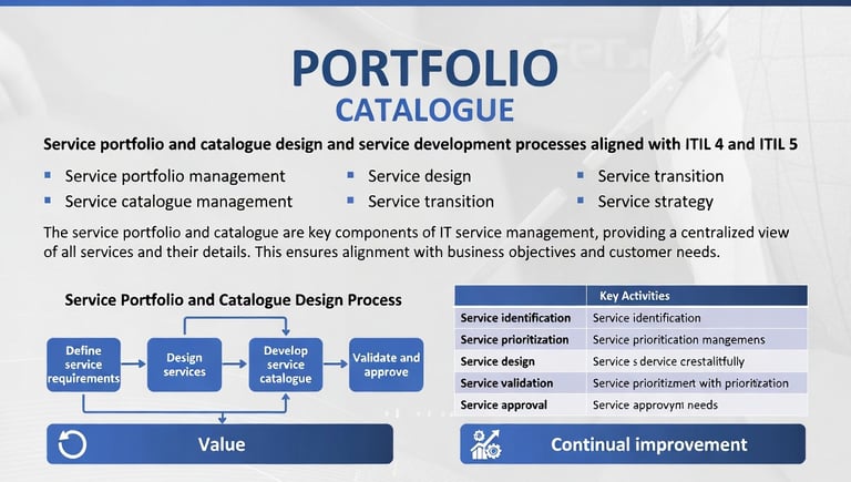 Aligning your service portfolio catalogue design and development processes with ITIL 4 and 5 will enable the MSP to adapt to digital transformation while focusing on value, sustainability, and user needs.